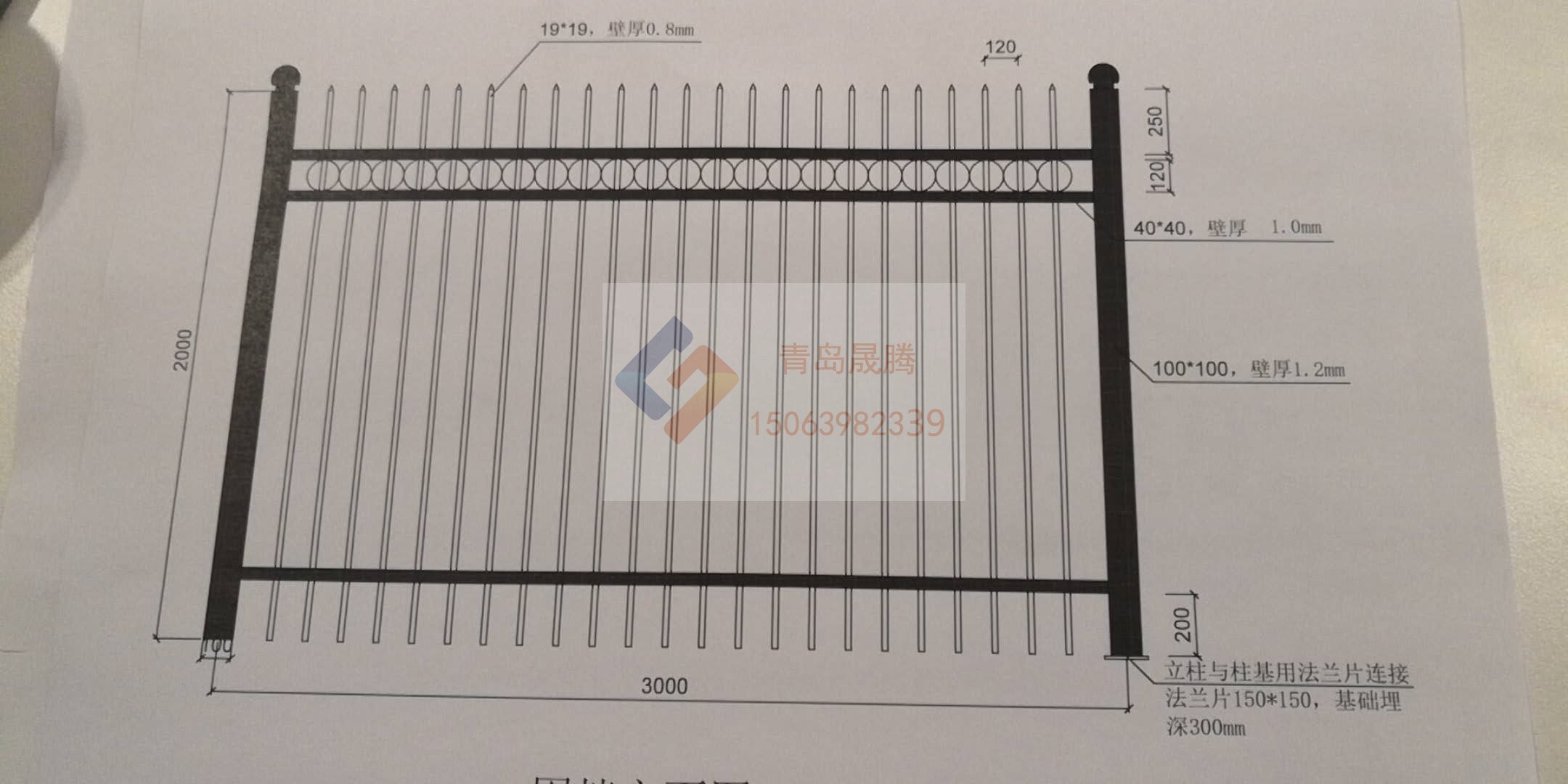 鋅鋼護欄整體高度2米,立柱中心距為3米,采用100mm*100mm方形鍍鋅鋼管作為立柱,40*40mm方形鍍鋅鋼管作為衡量,20mm*20mm方形鍍鋅管作為豎向連接桿,橫梁、立柱、豎向連接桿以沖孔穿接的方式連接,顏色搭配為綠白搭配給人以新鮮感。